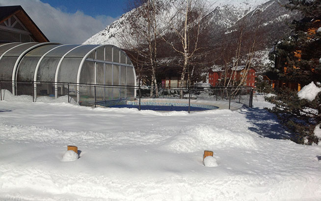 Ele consiste de seis cabanas de madeira, totalmente equipados para 4 a 6 pessoas, club house, piscina aquecida e sala de jogos.